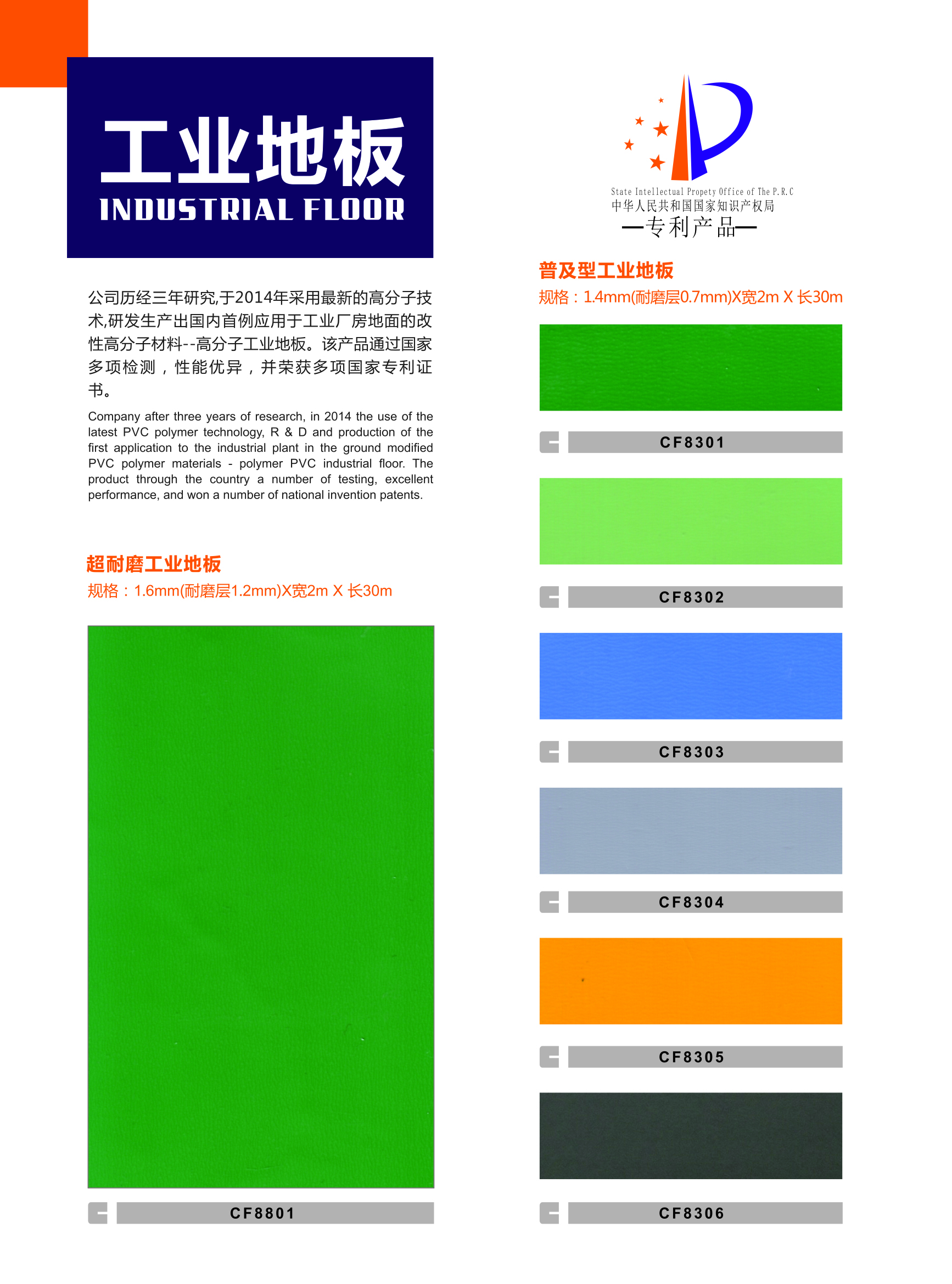 6 綠色環保:生產高分子工業地板主要原料不含放射性元素,是綠色環保的新型地面裝飾材料。