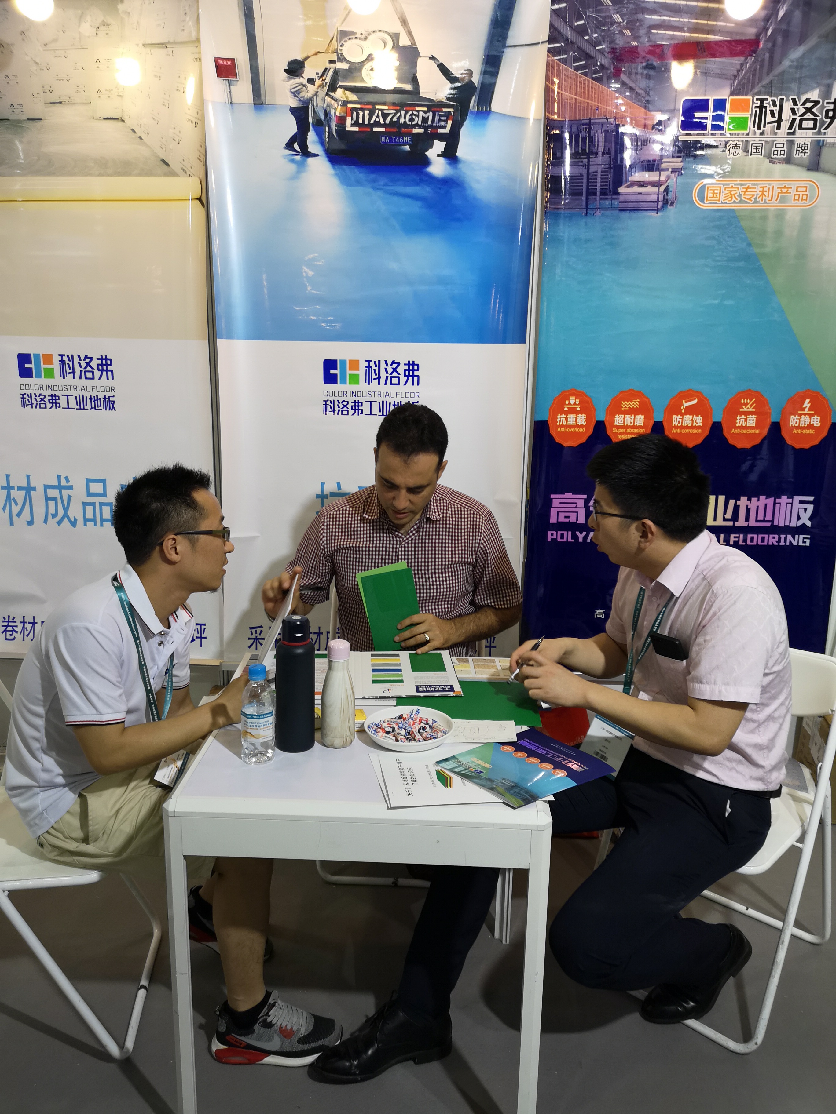 在此次展會上出現(xiàn)了一種顛覆傳統(tǒng)半成品安裝模式工業(yè)地坪的新型工業(yè)地面材料---高分子工業(yè)地板,此工 業(yè)地板采用成品卷材鋪裝,由湖南峰暢建材有限公司(科洛弗品牌)投入研發(fā)并在取得國家專利后生產(chǎn)面市,目前已在眾多知名上市企業(yè)生產(chǎn)廠房地面投入使用。如:得潤電子、興發(fā)集團、艾華集團、長高集團、千山藥機、科力遠(yuǎn)、福耀玻璃、中糧集團、蒙牛乳業(yè)等。科洛弗高分子工業(yè)地板之所以受到眾多知名企業(yè)青睞,是因為高分子工業(yè)地板具備了傳統(tǒng)工業(yè)地坪材料所無法具備的眾多優(yōu)點,主要突出在環(huán)保、耐磨、防腐蝕、防靜電、抗菌、易安裝易維修等方面的優(yōu)勢。