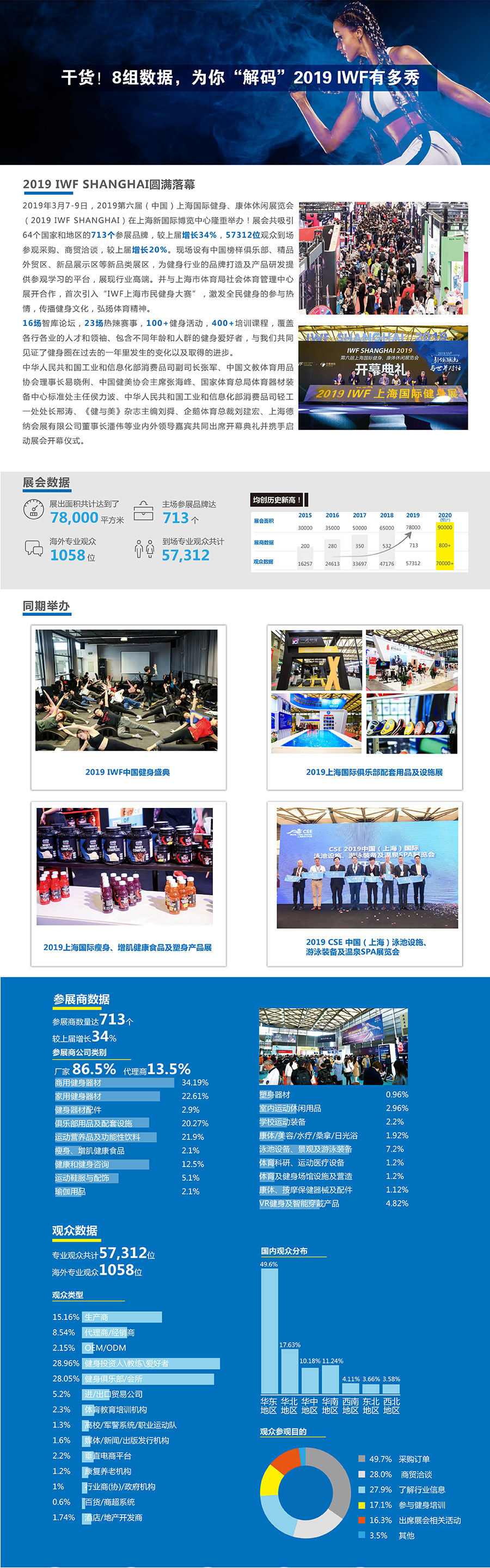 2019年,IWF SHANGHAI遷至上海新國(guó)際博覽中心舉辦,全新展館,全新布局。國(guó)內(nèi)外展商將專業(yè)展示健身領(lǐng)域各個(gè)環(huán)節(jié)的新產(chǎn)品、新技術(shù)及應(yīng)用,凸顯新的智能技術(shù)及服務(wù)給健身帶來(lái)的巨大變革。同時(shí),上百場(chǎng)高峰論壇、潮流盛宴、賽事競(jìng)技、國(guó)際培訓(xùn)、互動(dòng)體驗(yàn)活動(dòng)等,將為所有與會(huì)者提供360度全方位的行業(yè)展示!