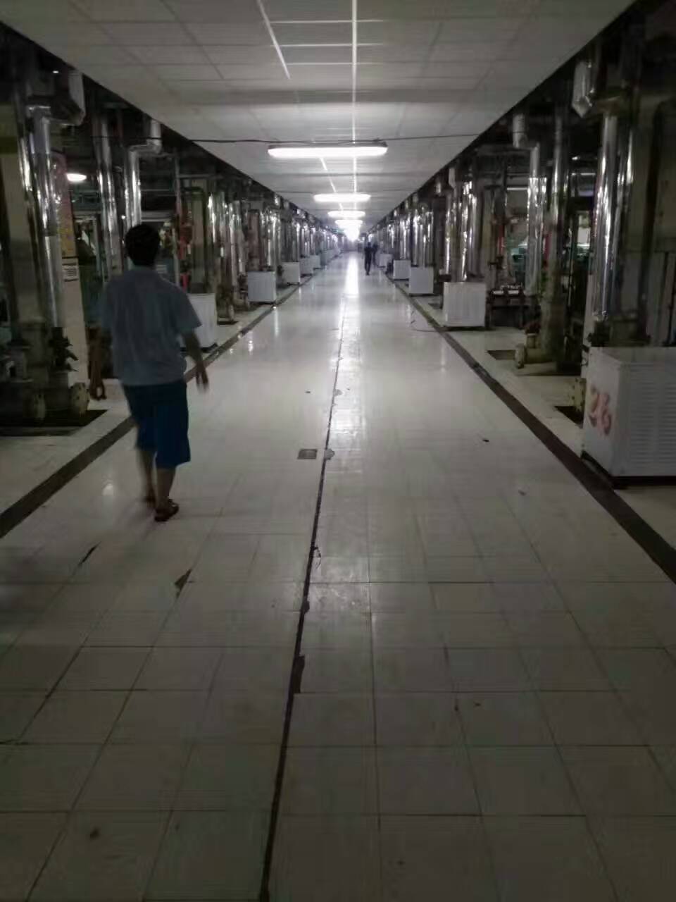 從廠房地面我們還能看出部分地方用的是瓷磚,瓷磚在安全方面沒有保障,尤其是地面遇水之后,防滑特性不好,瓷磚在受到重物沖擊時也會導(dǎo)致開裂的情況出現(xiàn)。