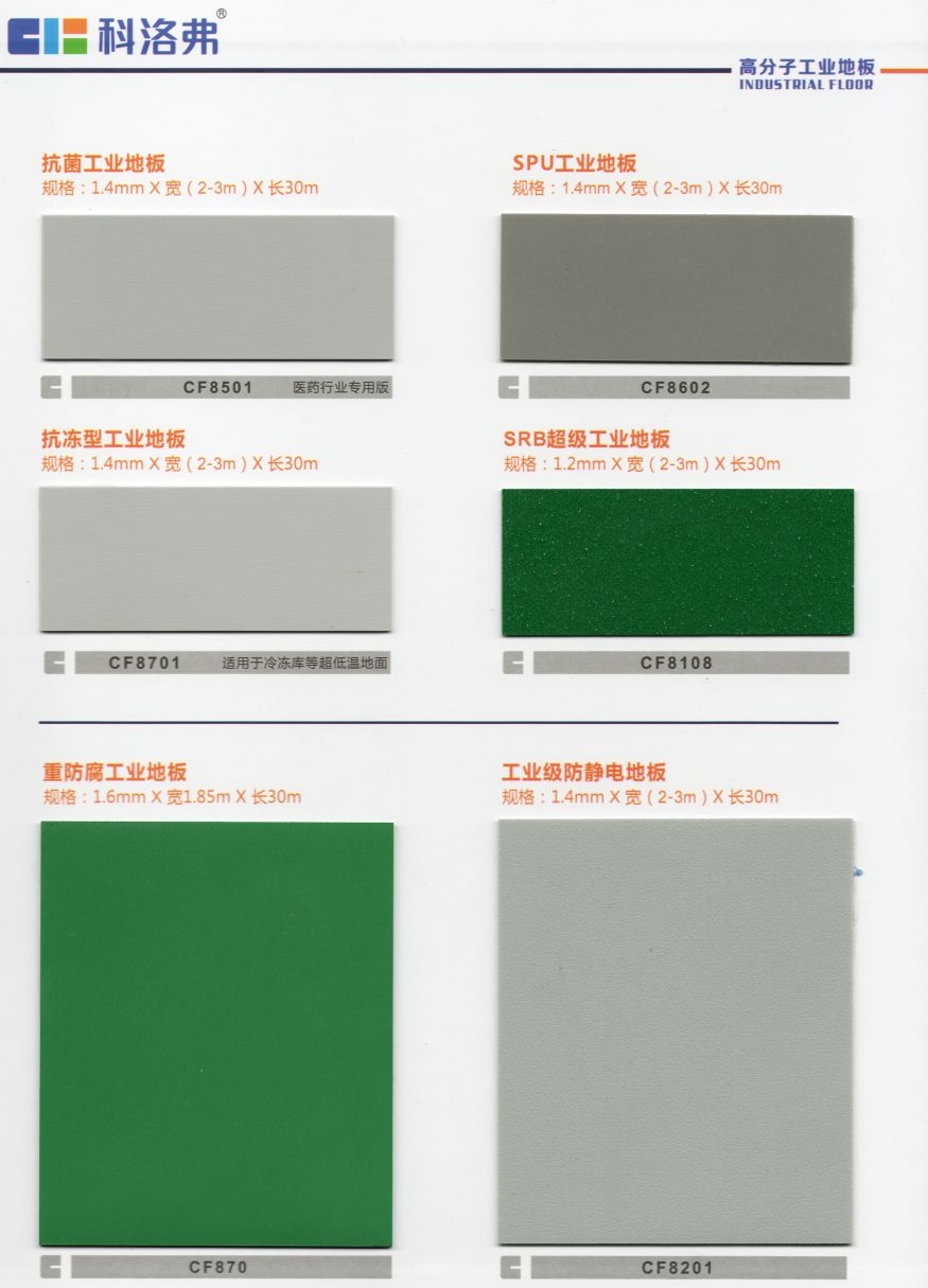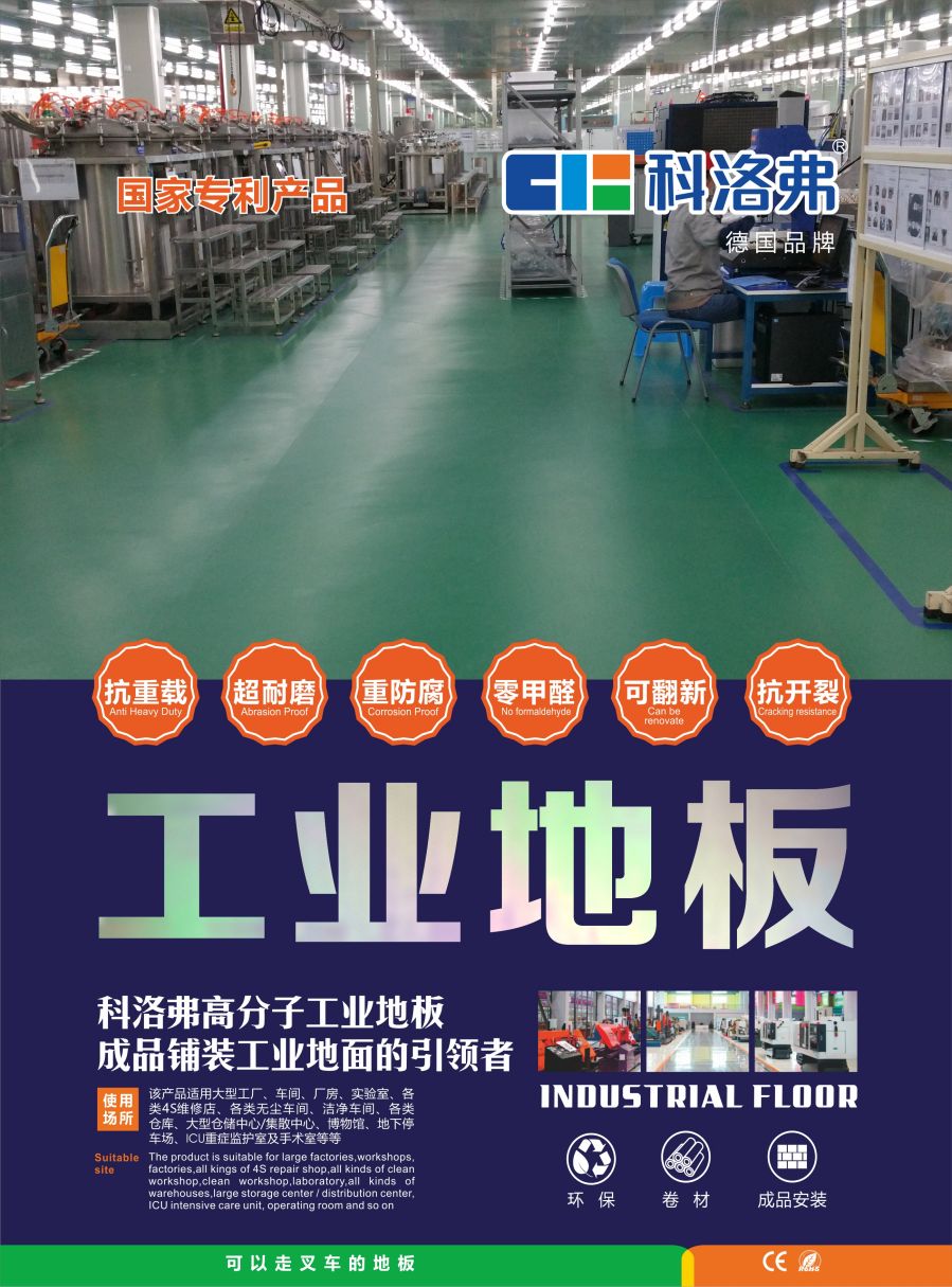 科洛弗高分子工業(yè)地板適用范圍:要求耐磨性強、耐沖擊性、高荷載、防靜電、耐酸堿、抗開裂、抗菌、環(huán)保安全的電器、電子、電器、機械(如汽車、摩托車、電梯、自行車等)、通訊設(shè)備、儀器儀表、煙草、食品、醫(yī)藥、紡織、飼料、家具、服裝、化工、塑料、文體用品等制造車間地面。