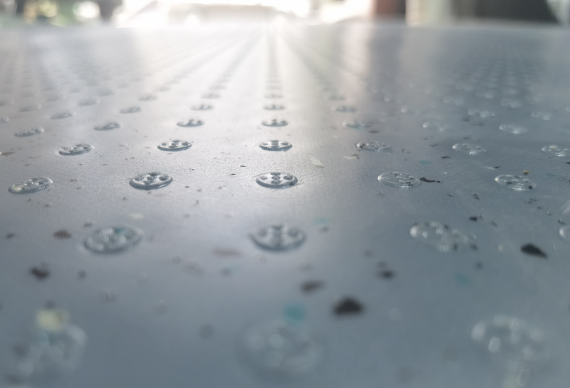 這款浴室 防滑地板「科洛弗全天候多功能防滑地板」是用軟聚氯乙烯材質做成的,它和淋浴區域地面的完美搭檔,可以在蒸汽房、更衣室等幾乎所有潮濕的地面使用,當人們赤腳行走在潮濕的地面時,滑倒的概率相當大,這個時候就需要鋪設這款防滑抗菌浴室地板。
